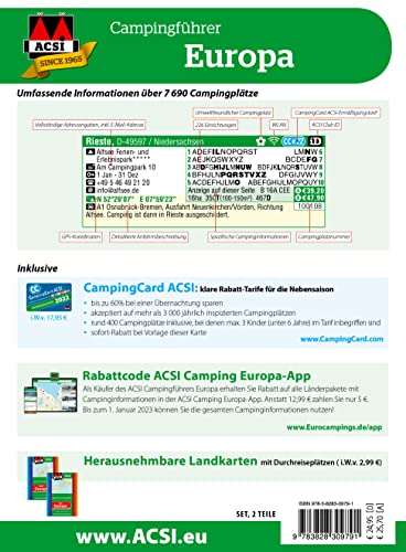 Specification: ACSI Campingführer Europa 2022: in 2 Bänden inkl. ACSI CampingCard Ermässigungskarte und ACSI Camping Europa-App Rabattcode (Coverdesign variiert) (Hallwag ACSI Führer) Taschenbuch – 20. Dezember 2021
